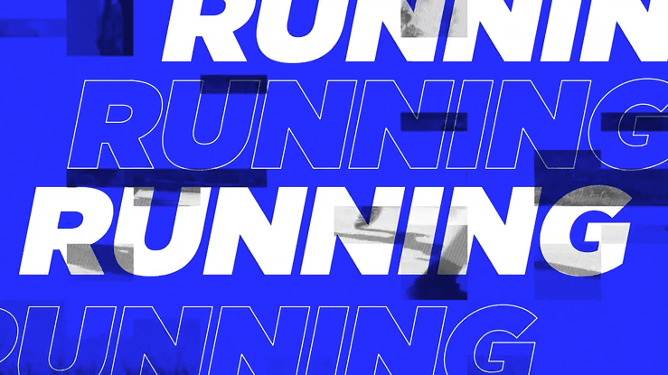 The mixed-media approach enhances this further: real running footage and photography are woven into the typographic sequences, grounding the abstract motion of text in authentic athletic energy. Geometric overlays and rapid-cut editing amplify the momentum, making each transition feel like another stride forward.